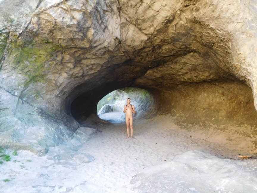 Der Weg dort hin war geprägt durch Wurzeln und herumliegende Pinienzapfen, was teilweise recht unangenehm war. Auch dort auf dem Weg trafen wir auf ein Ehepaar mittleren Alters mit dem wir auch eine sehr nette Unterhaltung hatten. Die beiden fanden es sehr interessant das wir nackt wandern und haben uns einige Fragen dazu gestellt, die wir auch ausführlich beantwortet haben.