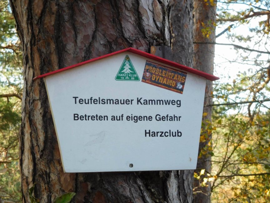 Diesen haben wir natürlich erklommen und bekamen eine prima Aussicht geboten. Plötzlich kamen mehrere große Gruppen Wanderer dort an. Daher war es nicht so leicht dort wieder herunter zu kommen über die sehr schmale und sehr steile in den Fels gehauenen Treppe. Als wir es dann irgendwann geschafft haben, haben wir ein wenig die Umgebung erkundet und den Stempelkasten der Harzer Wandernadel gesucht.