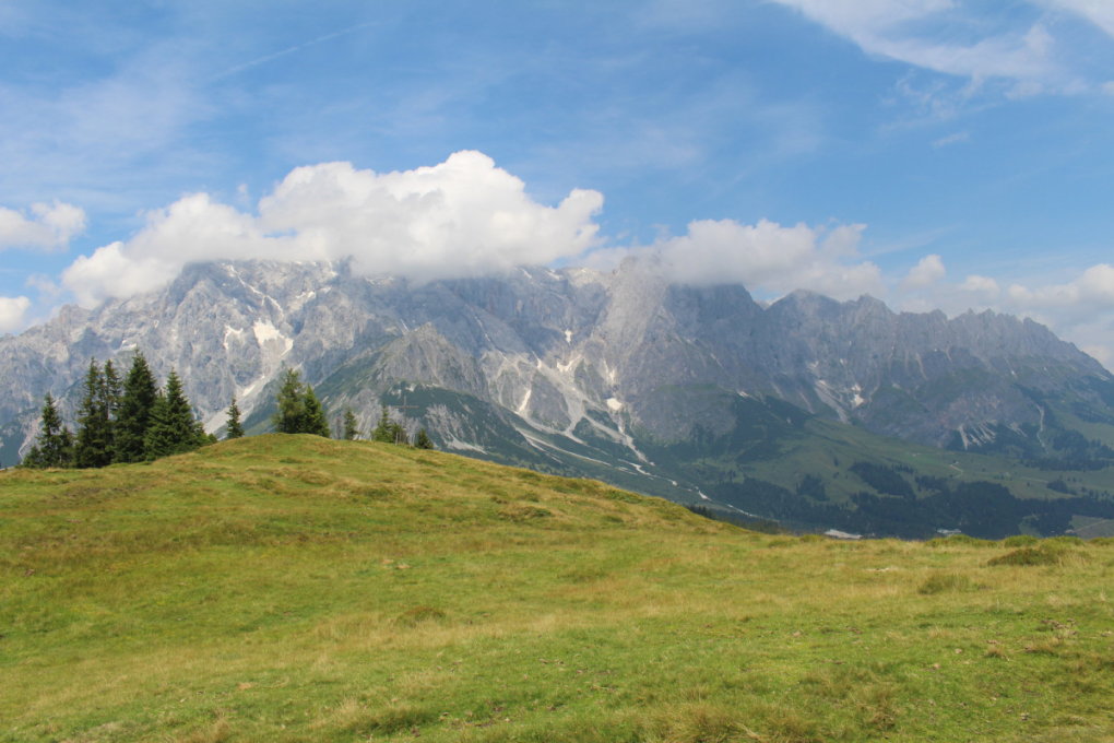 Nach 4 km Steigung kammen wir zum ersten Plateau mit Aussicht auf den Hochkönigberg - Nach einem ausgiebigen Photo-Shooting gings es dann weiter zum Gipfelkreuz, wo wir eine herrliche Aussicht über das ganze Tal hatten.