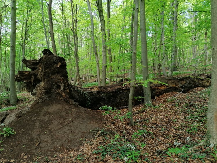Als ich weiter gegangen bin, kam ich zum „Hirschzungen-Erdfall”, der war noch beeindruckender als der vorherige war. Dort traf ich auf eine kleine Gruppe Frauen die ebenfalls das schöne Wetter genutzt haben. Nach einer kurzen und netten Unterhaltung ging ich weiter meines Weges. Kurze Zeit später traf ich auf einen weiteren Erdfall, an dessen Rand die eingestürzten Reste einer kleinen Höhle zu sehen waren.