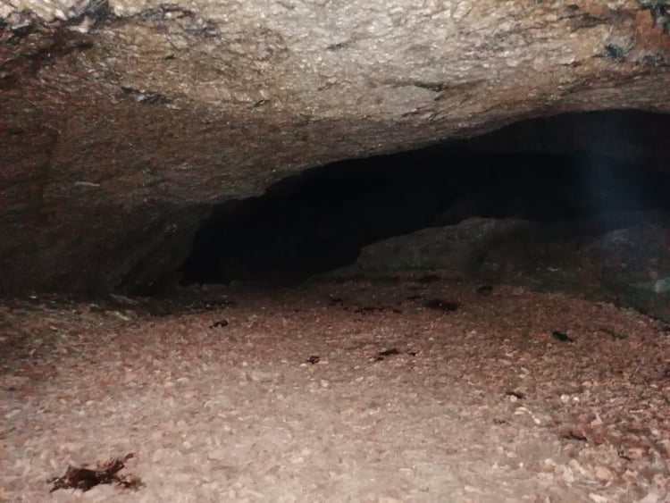 Um direkt zu der Höhle zu gelangen musste ich einen steilen und sehr rutschigen Hang hoch klettern. Natürlich konnte ich es mir dann nicht nehmen lassen ein Stück weit in die Höhle hinein zu gehen. Hab aber schon nach wenigen Metern festellen müssen, dass ich dort ohne Taschenlampe nicht weiterkomme. Also kehrt marsch und zurück ins Tageslicht.