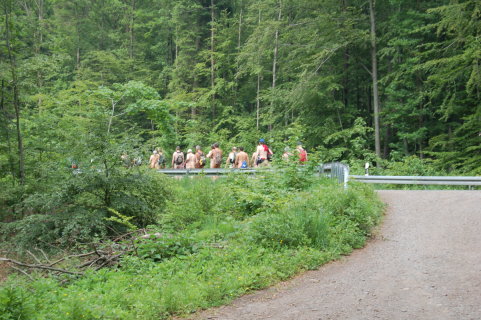 Dabei konnte ich noch den Zieleinlauf eines Radrennes verfolgen, ein Radrennen aller Altersklassen mit anschließender Siegerehrung. Und dann kamen sie auch wieder zurück, „meine” Nacktwandergruppe - 15 Minuten, nach dem Radrennen. Da hatten wir einen gemeinsamen Zieleinlauf gerade so eben verpasst.