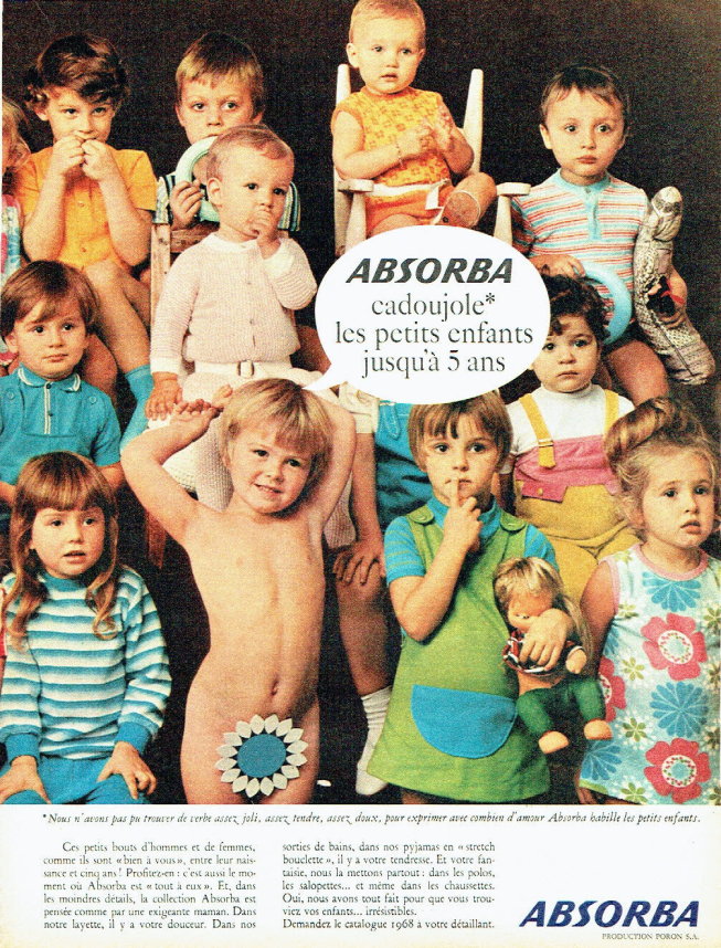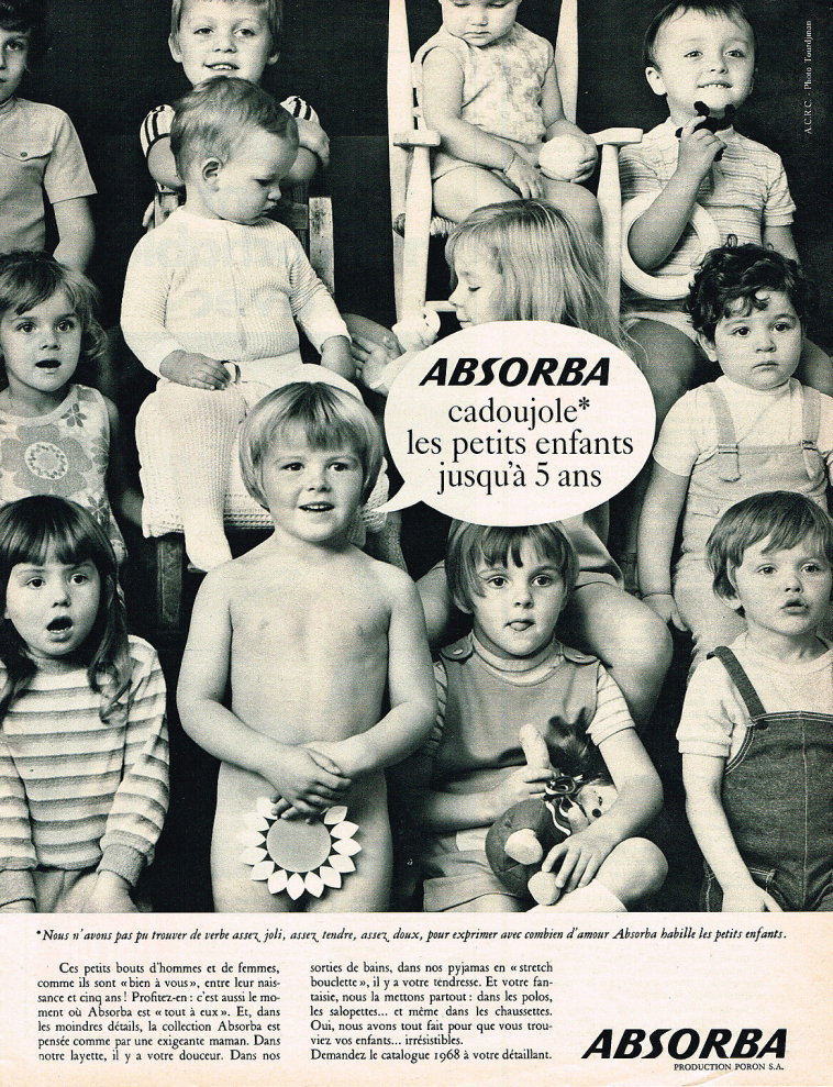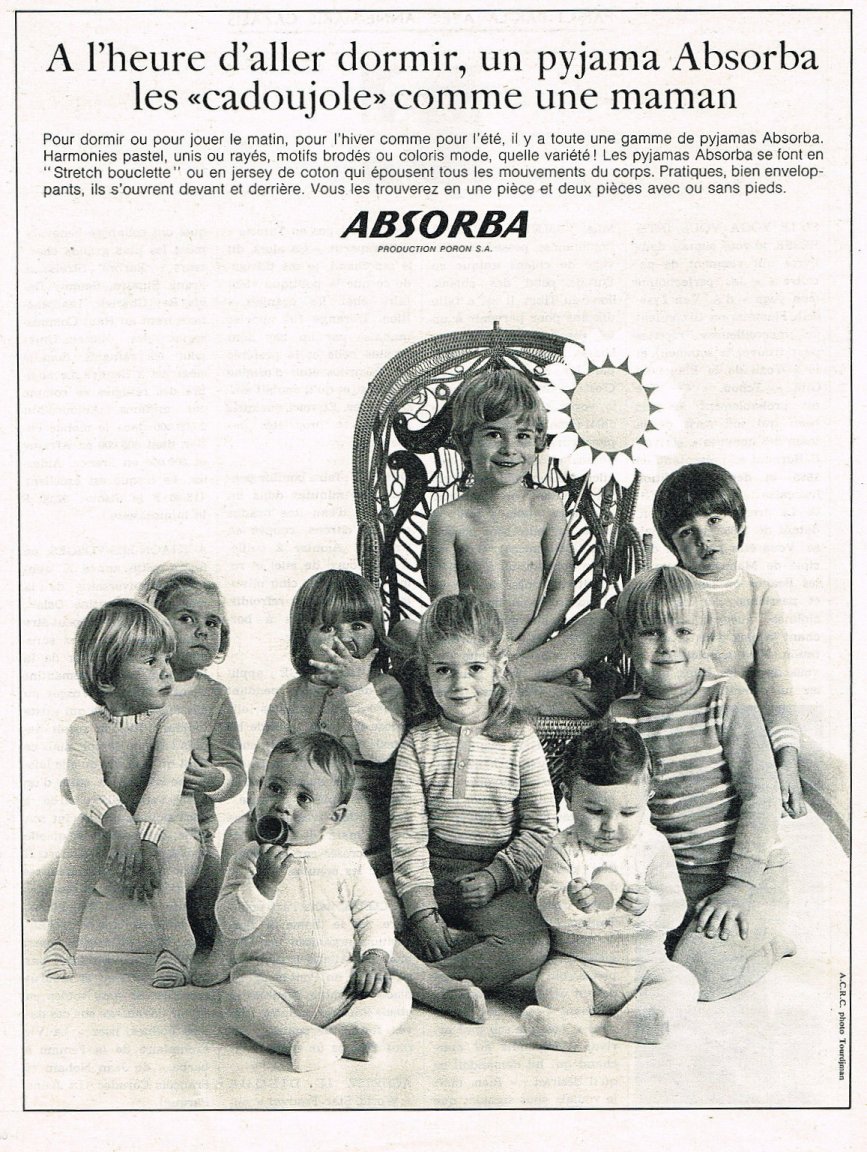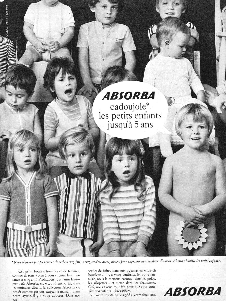 Werbeanzeigen der Firma Absorba aus Frankreich des Jahres 1969 mit der Aufforderung einen Katalog und einen Händlernachweis anzufordern.
