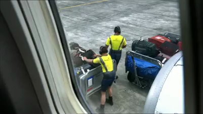 Crew und Bodenpersonal der Fluglinie sind auf dem ersten Blick angezogen ... erst, wenn man genauer hinsieht, lässt sich erkennen, dass die ganzen Uniformen nur aufgemalt, das Personal ansonsten nackt ist.