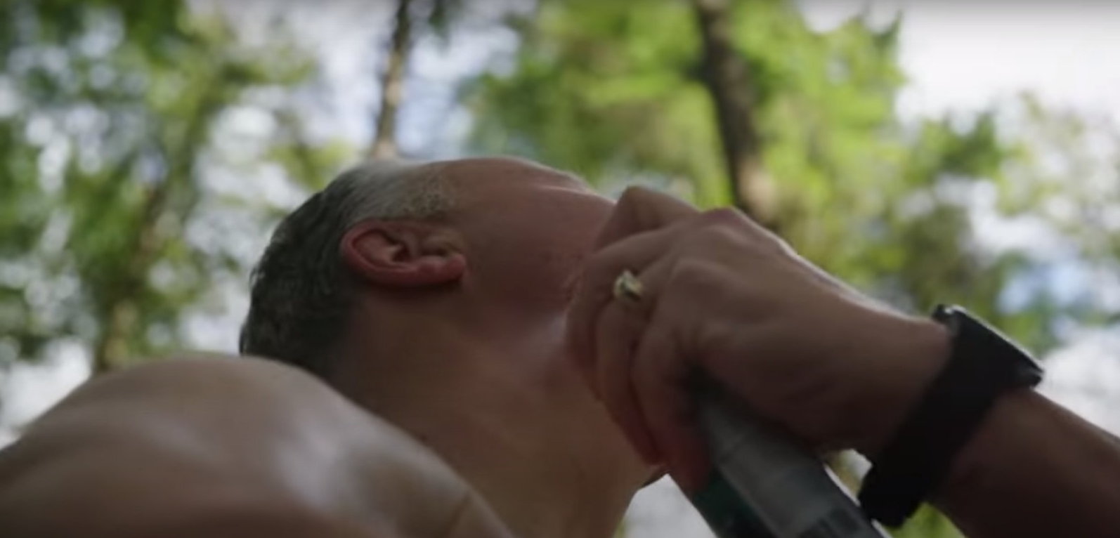 In diesem Werbespot sehen wir einen etwas älteren Herren, wie er in einem Wald wandert. Bei einer Rast zieht er sich komplett aus, verstaut seine Kleidung in dem Rucksack und sprüht sich mit dem Anti-Zecken-Mittel der kanadischen Firma AtlanTick sorgfältig ein. um dann, komplett nackt, weiter zu wandern.