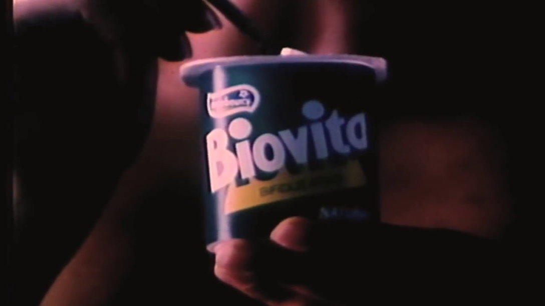 Während die junge Frau (= Mutter) den ganzen Spot über genüsslich den Biovita-Joghurt isst, erklärt das kleine Mädchen (= Tochter) die Vorzüge des Joghurts - nicht nur mit vielen Worten, sondern auch mit reichlich Gesten versehen.