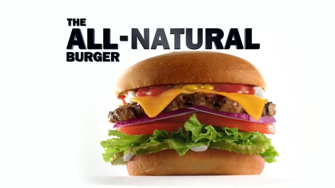 In dem Werbespot aus dem Jahr 2022 ist eine junge Frau zu sehen, wie sie nackt über einen Frische-Markt schlendert und zum Schluß in einen „All-Natural Burger” beißt.