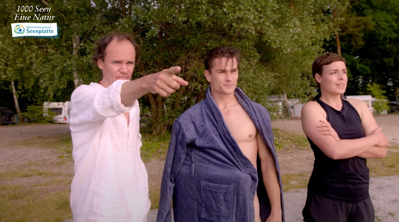 Werbespot für einen Urlaub in der Mecklenburgischen Seenplatte mit Olaf Schubert, Julia Keiling und John Förster.