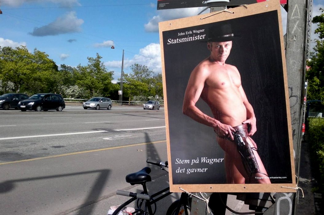 Zu den Wahlen am 18. Juni 2015 in Dänemark zog der parteilose John Erik Wagner im wahrsten Sinne des Wortes „blank”. Nur leicht als Cowboy verkleidet und unzensiert hingen die Plakate des 51-Jährigen in ganz Kopenhagen.