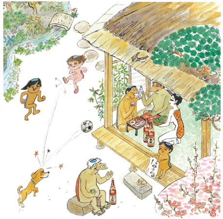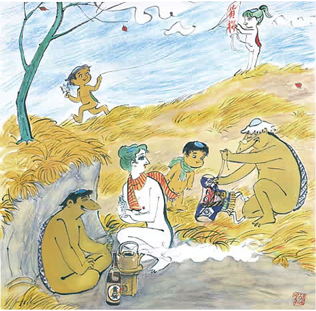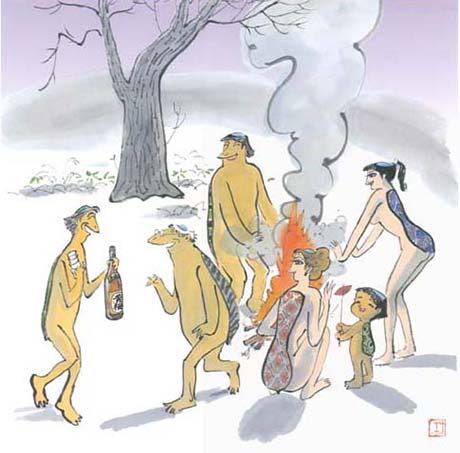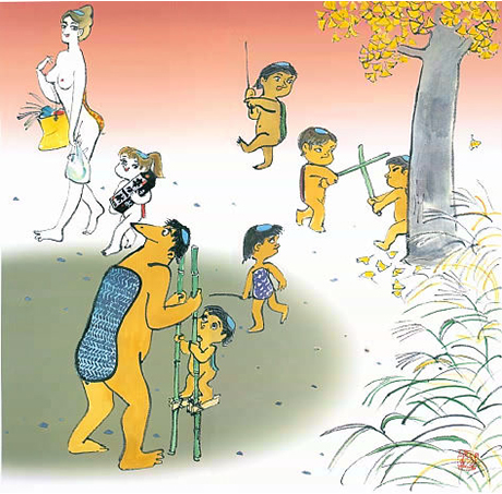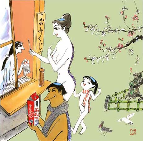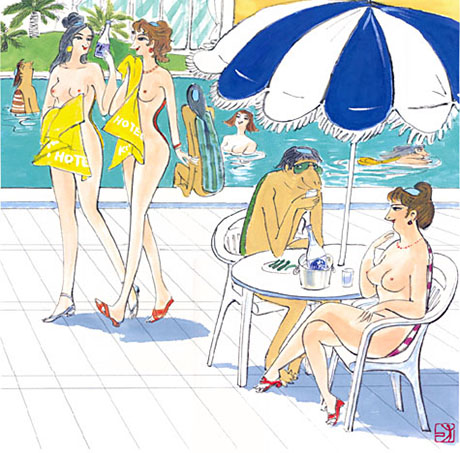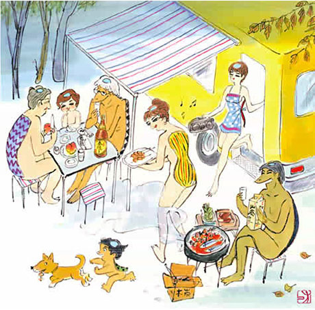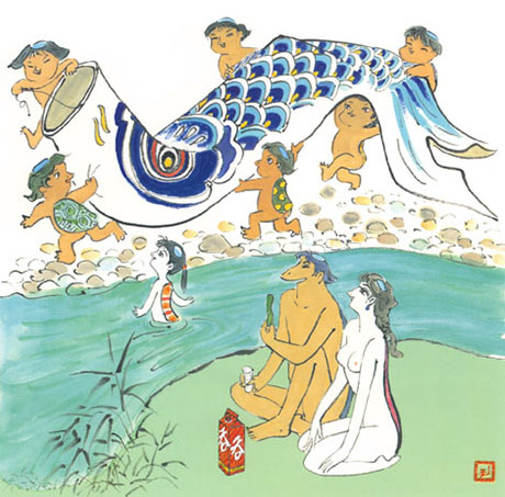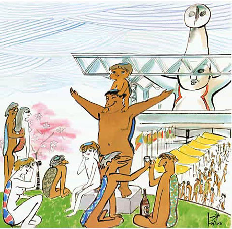 Die hier gezeigten Illustrationen stammen von dem japanischen Künstler Isao Kojima, der hier der natürlichen Nacktheit einen großen Raum gab.