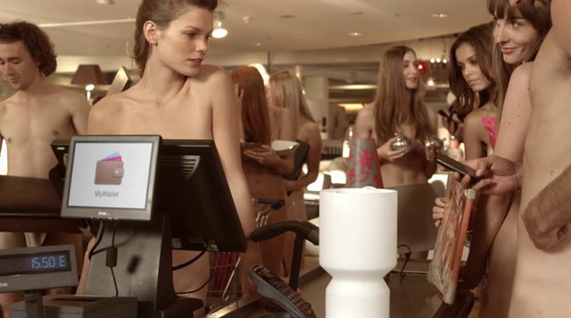 Dieser Werbe-Spot, zu dem 54 Frauen und 53 Männer gecastet wurden, entstand 2012 in einem Möbelhaus in Warschau (Polen). Der Werbe-Spot sollte verdeutlichen, dass ein Einkauf „ohne” (Bargeld) mit dem Bezahlsystem via Smartphone, leicht, sicher und bequem ist.