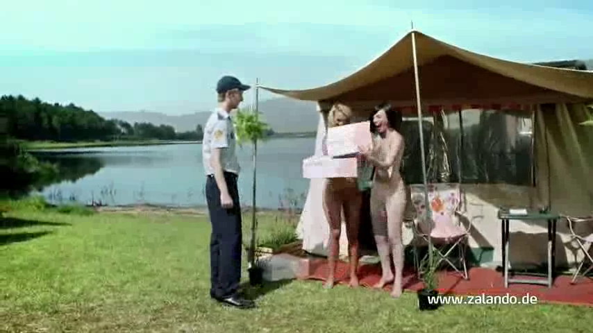 Schuhe sind akzeptiert, Bekleidung nicht - dieser Werbespot der Firma Zalando spielt auf einem FKK-Campingplatz. Ein Paketbote, etwas irritiert durch die vielen Nackten, liefert direkt ans Zelt und wird dann aufgefordert, sich auszuziehen.