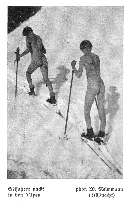 Walter Reimmann berichtet, dass er mit seiner Frau, seiner Tochter (14) und seinem Sohn (12), nackte Skitouren auf die benachbarten Gipfel, wie dem Brüggerhorn, unternahm. Größere und längere Touren brachten die nackte Familie auch auf das Hörnli und das Weißhorn.